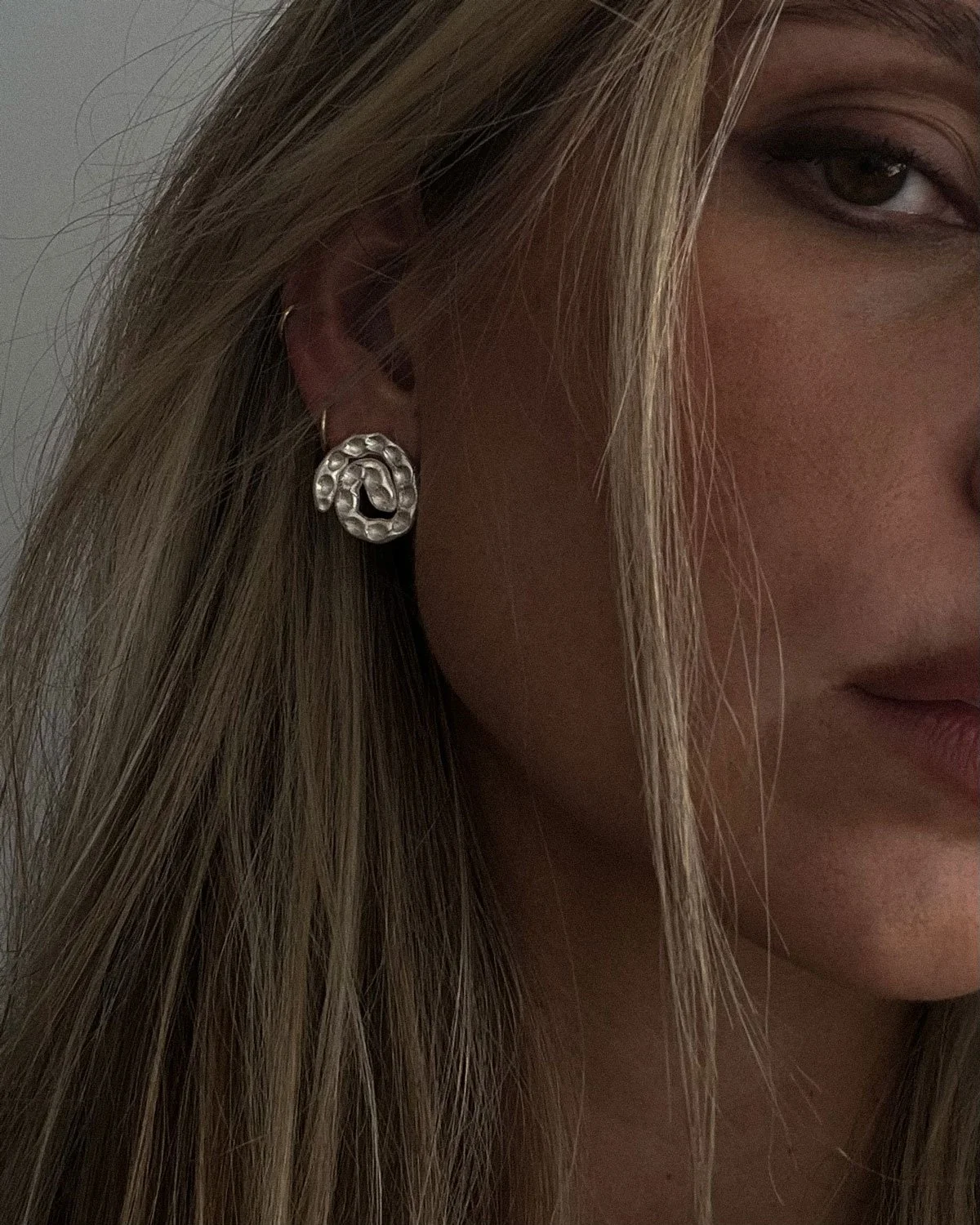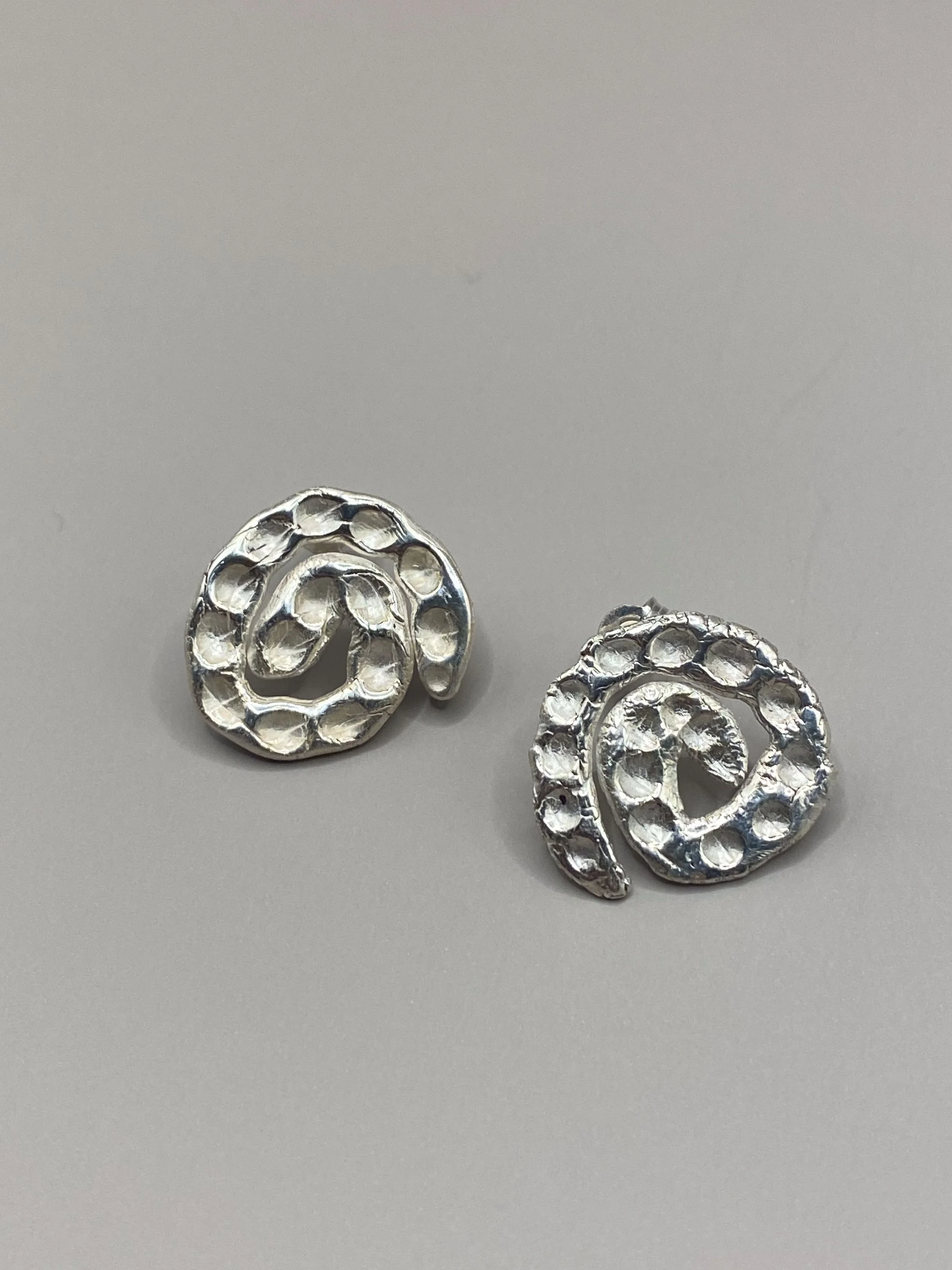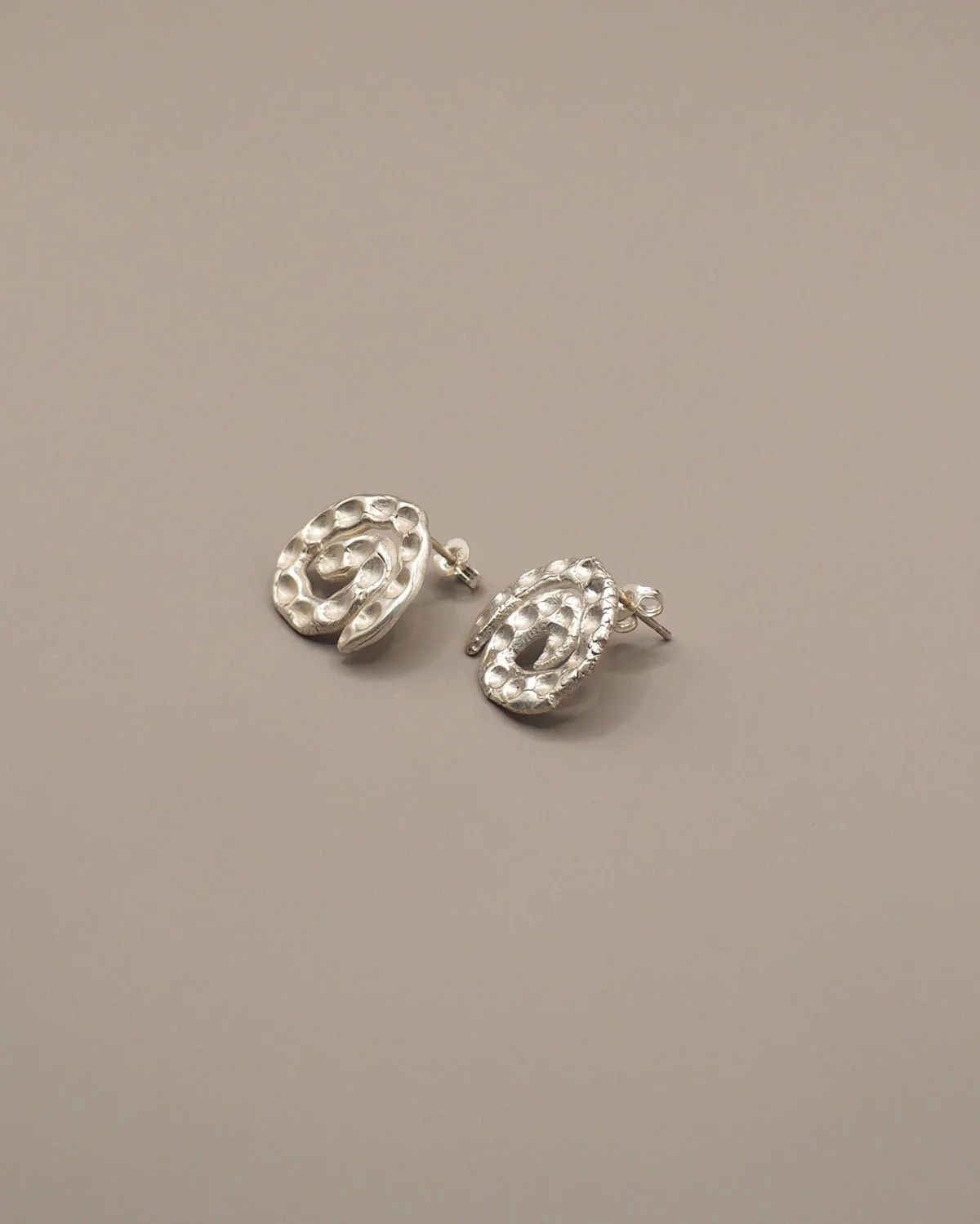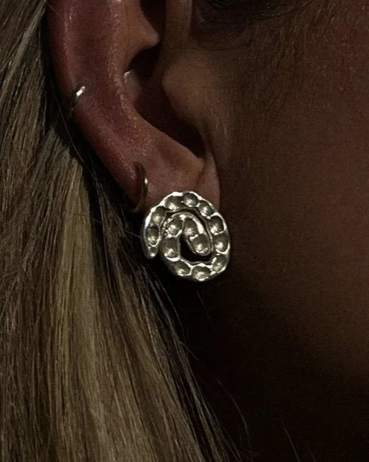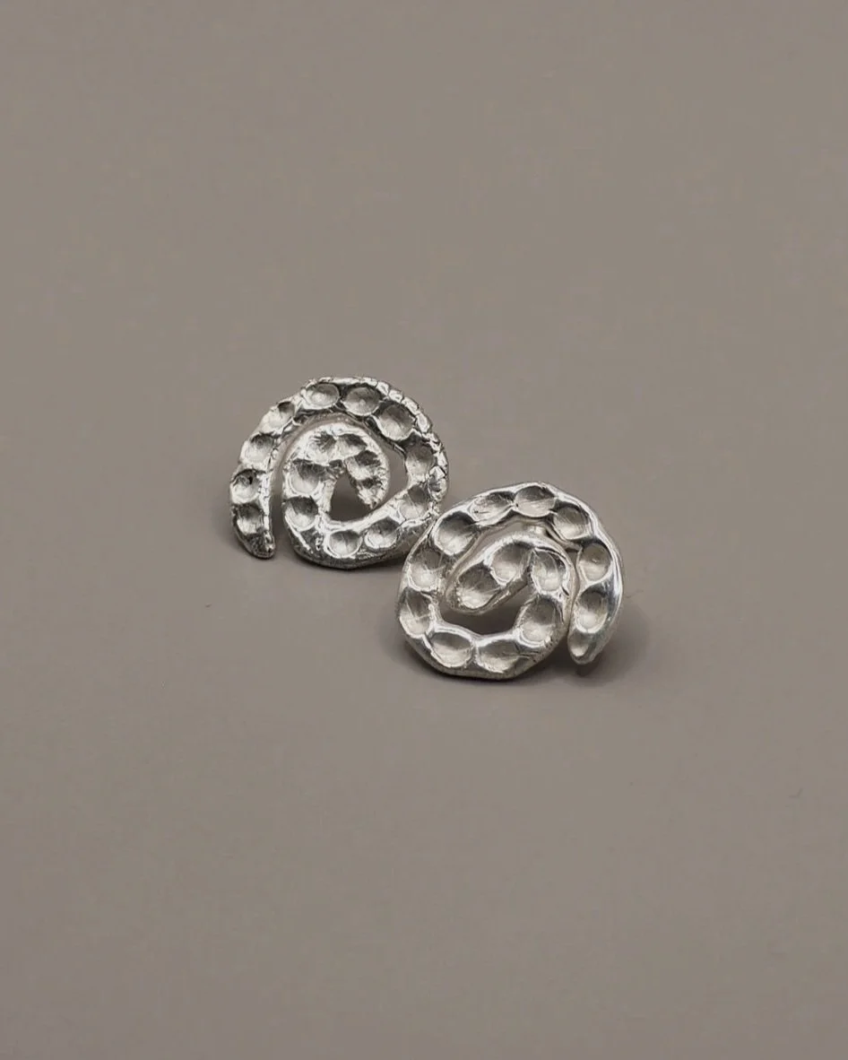 The Cascade Earrings, handmade textured swirls.